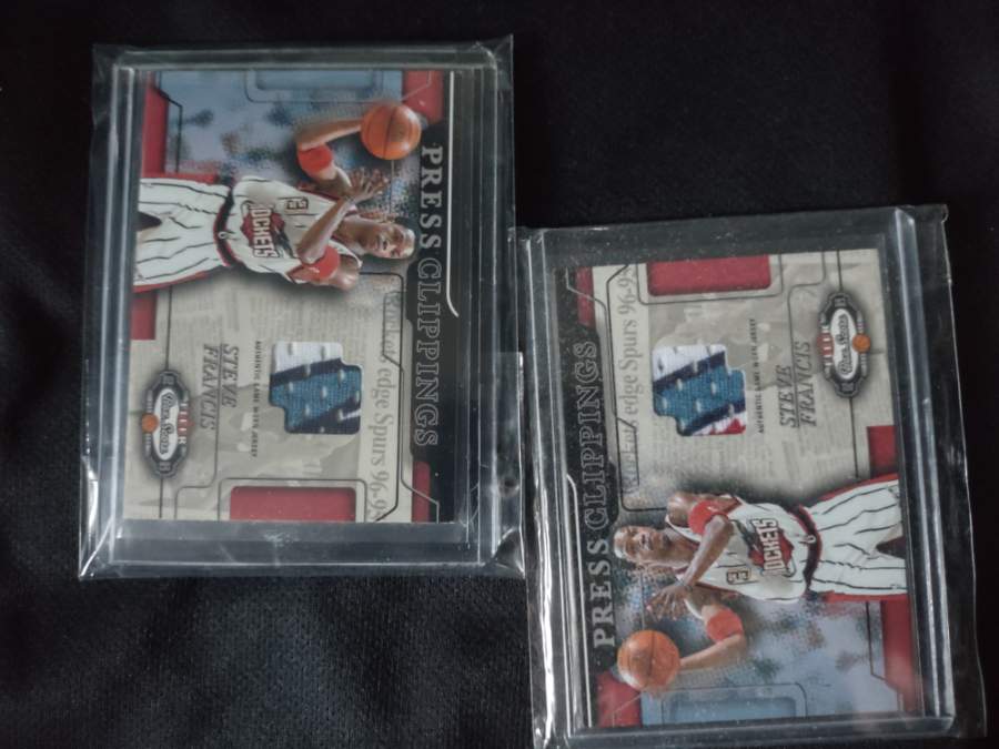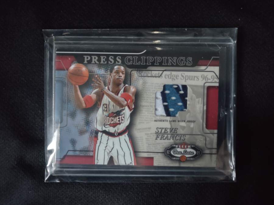 I thought I would never see a card from this set like this again, but I found one and just got it in the mail. 2002 Fleer Press Clippings Steve Francis. It may not say patch but general consensus is that it is a patch due to it being a part of the logo.