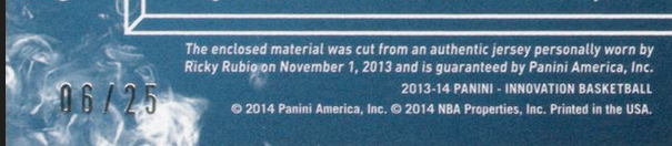 Notice how on the 2013-14 relics the phrase "game worn" and "NBA Game" is completely eliminated and replaced with "enclosed material" and "personally worn"