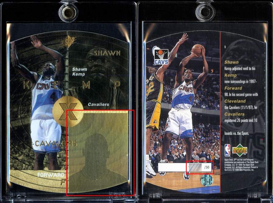 Compare the cards above to a restored Shawn Kemp refractor:
