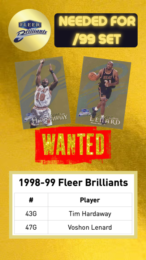 After almost two years my quest to complete the 1998-99 Fleer Brilliants Gold /99 Basketball set is down to 2!
