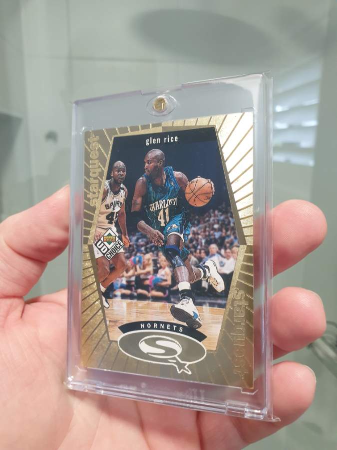 Secondly moving back to my roots of being a 90s kid I found that LJ and Zo left the hornets in the mid 90s however I found out that Glen Rice moved to the team. I remember Rice as I had studied the backs of cards in the early 90s and knew he was also a great player. The more you dive, the more you uncover and discovering that Rice was the best player on the team during the greatest 3yrs of card releases ever produced i was thrilled! Hence Gmoney is also my main PC.
